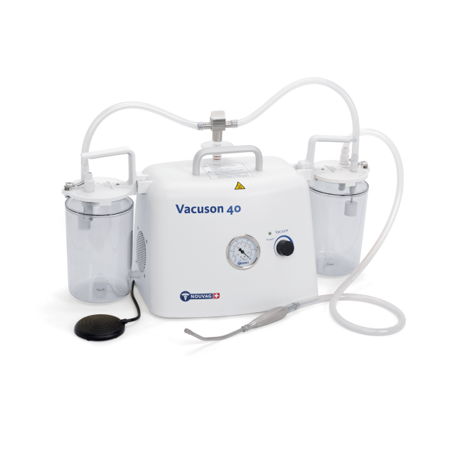 Vacuson 40 U - универсальный общехирургический электроотсасыватель, предназначенный для использования в хирургии, гинекологии, интенсивной терапии, палатах послеоперационного ухода за больными, отоларингологии, имплантологии, стоматологических клиниках и в общей врачебной практике. Обладает прочной конструкцией, прост в управлении, надежен в эксплуатации, высокопроизводительный, предназначен для продолжительной работы. Все части аппарата, контактирующие с отсасываемой жидкостью, стерилизуемы. Бесшумен, имеет контроль перенаполняемости.