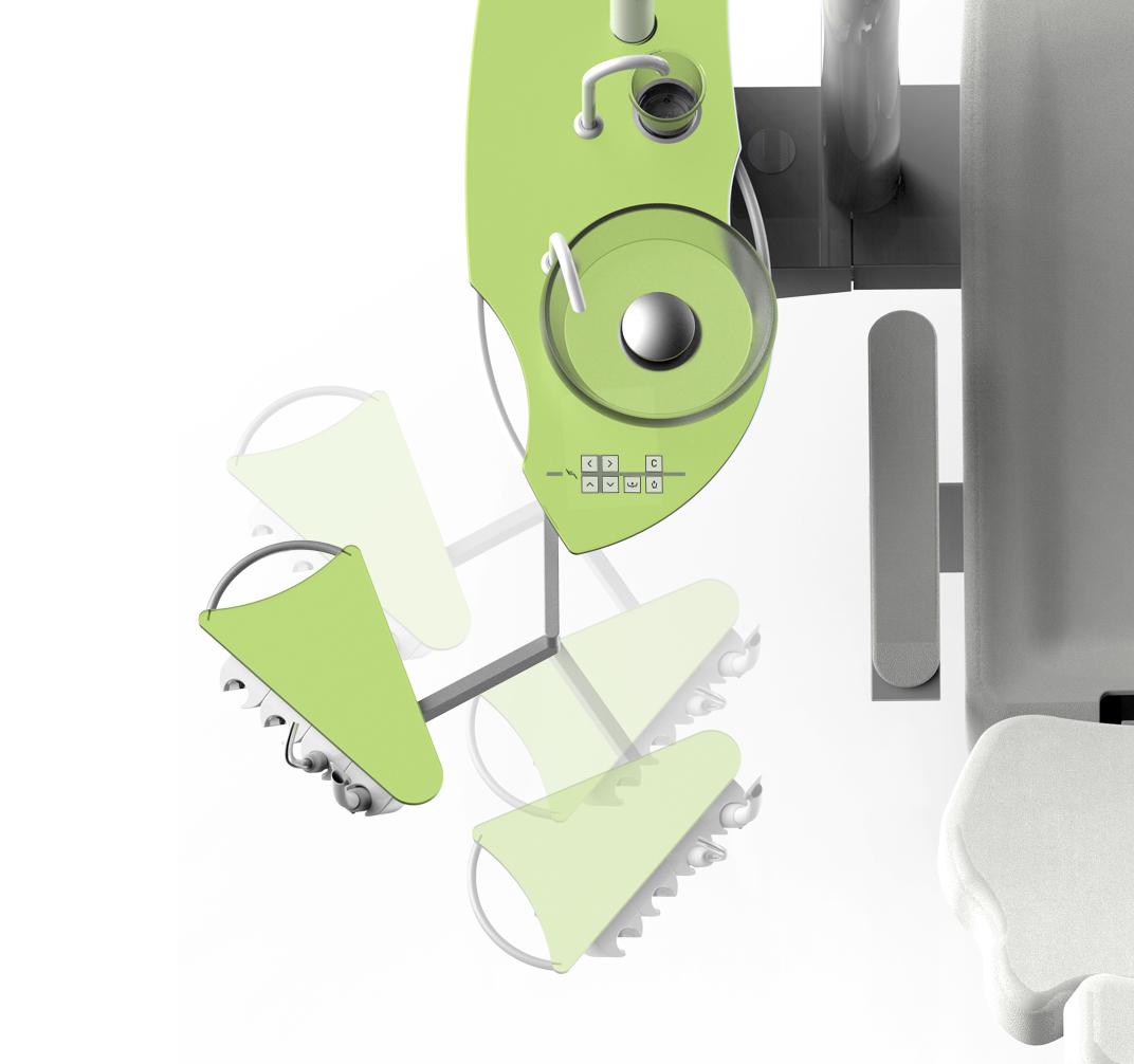 • Поворотный гидроблок крепится к креслу пациента.