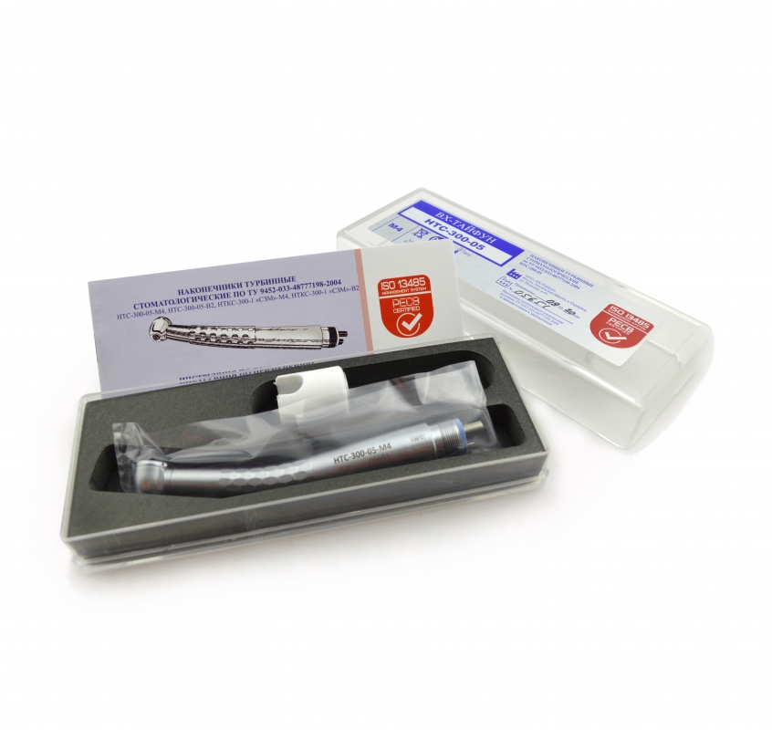 Наконечники турбинные стоматологические НТС-300-05-М4, НТС-300-05-В2, изготовленные по ТУ 9452-033-48777198-2004, предназначены для закрепления режущих инструментов с диаметром хвостовика 1,6 мм, приведения их во вращение.