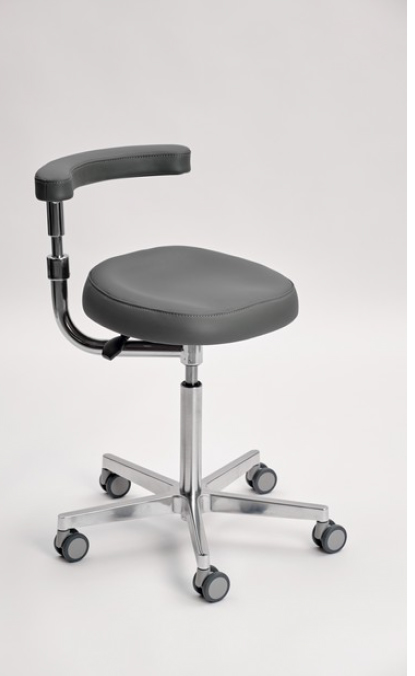 Стул оснащён абдоминальным упором, который позволяет поддерживать поясничную область врача и обеспечивает комфорт во время работы. Благодаря возможности настройки на 3600, абдоминальный упор также служит для поддержки локтей.