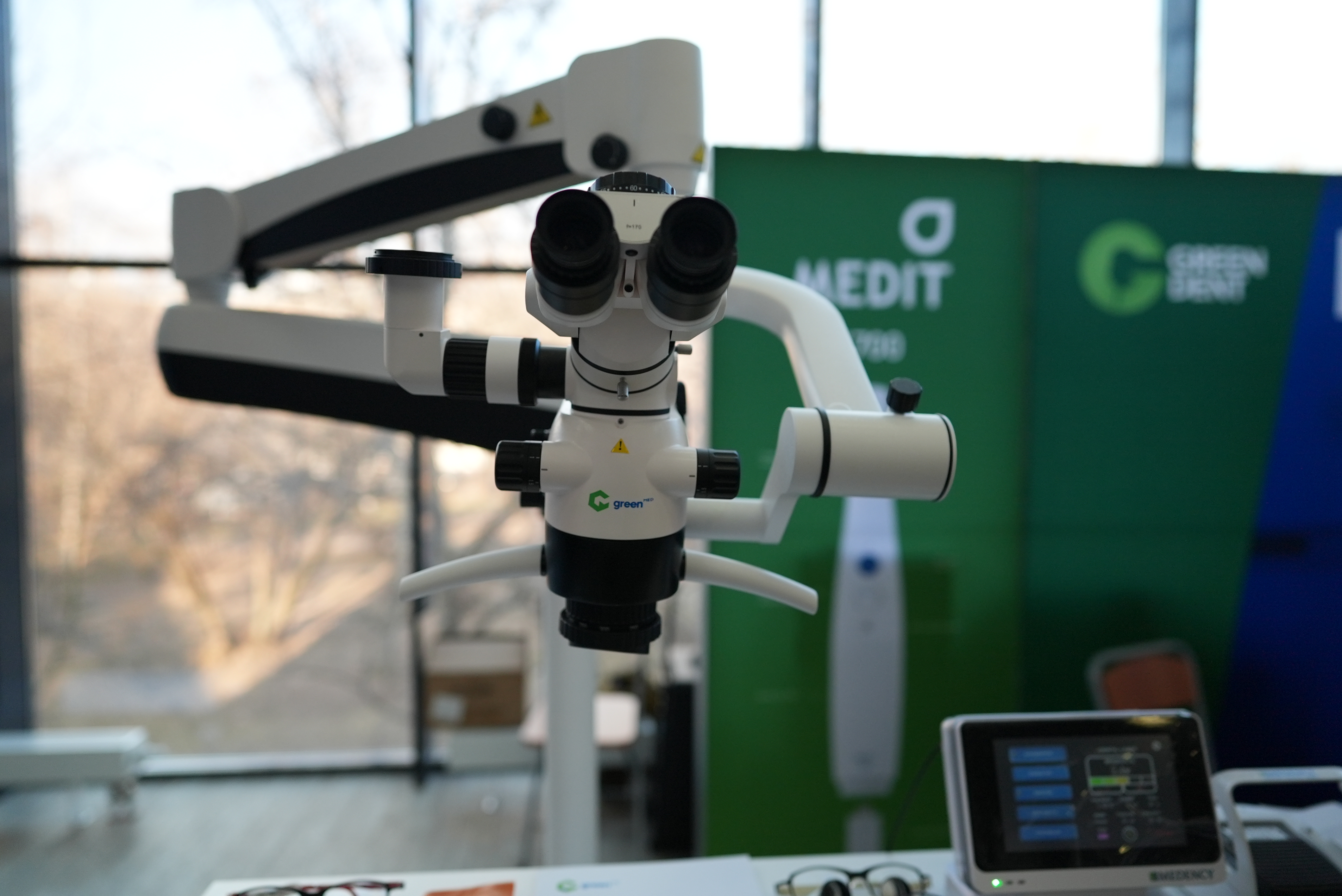 Компания GREEN DENT представила последние новинки стоматологического оборудования, в числе которого: 3D-сканер лица RAYFace, интраоральный сканер Medit, совершенные оптические приборы – микроскоп GreenMED C-Clear и бинокуляры NK Vision, а также обсуждаемая CAD/CAM-технология от немецкой компании SAM – лицевая дуга AxioPrisa.
